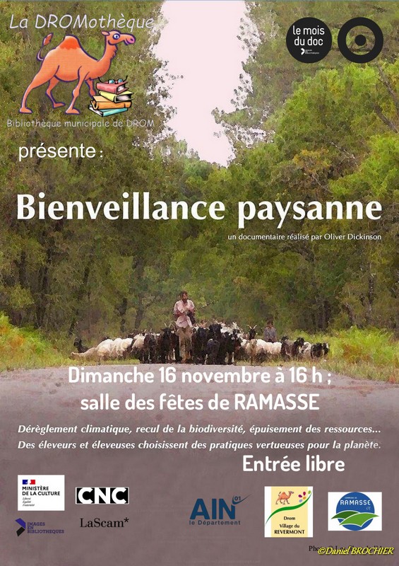 Avec « Bienveillance paysanne« , la DROMothèque proposait un tour de France de pratiques vertueuses en matière d’agriculture. Sans aucun jugement ou revendication, Olivier Dickinson a rencontré des éleveurs qui, face à l’impact de l’élevage industriel sur le climat et la pollution, sont déterminés à renverser la tendance par des pratiques vertueuses. En réhabilitant des espèces locales (poules, chèvres, vaches, brebis), en combinant plusieurs activités (élevages, vergers), en utilisant la biodiversité pour éviter des méthodes industrielles et artificielles, ils arrivent à combiner efficacité, rendement et qualité dans le respect du milieu naturel, contribuant même à l’éradication de parasites, à la lutte contre les incendies ou à l’entretien de pistes de ski.